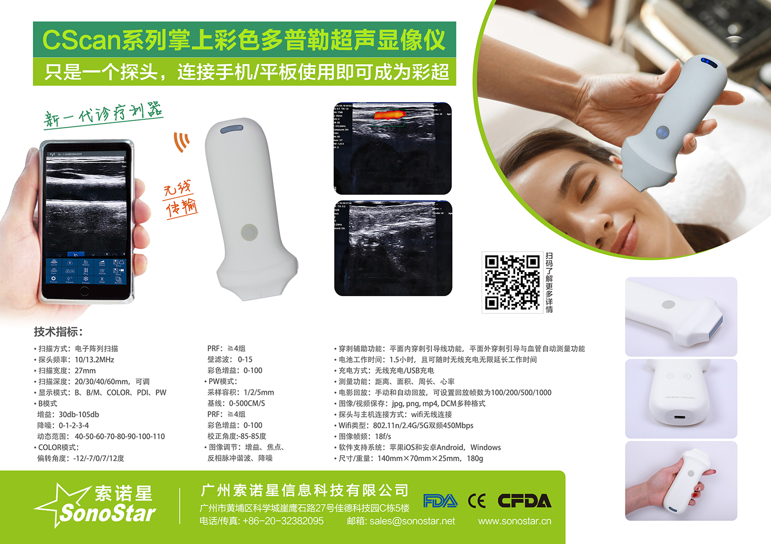 • 穿刺辅助功能:平面内穿刺引导线功能,平面外穿刺引导与血管自动测量功能