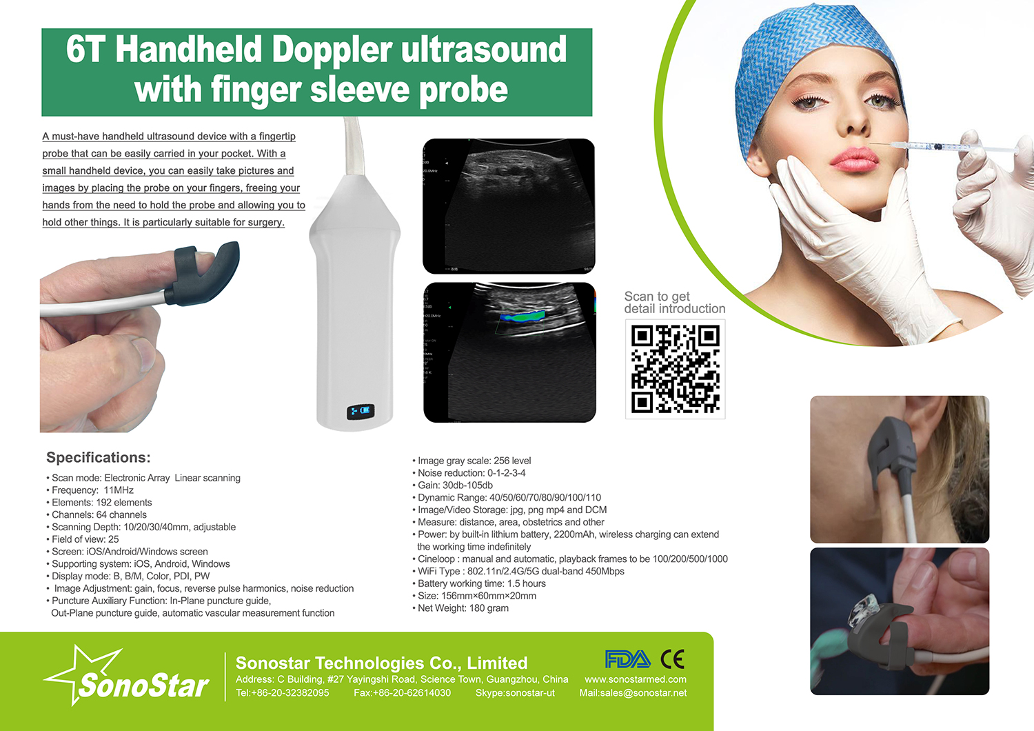 • Puncture Auxiliary Function: In-Plane puncture guide, Out-Plane puncture guide, automatic vascular measurement function