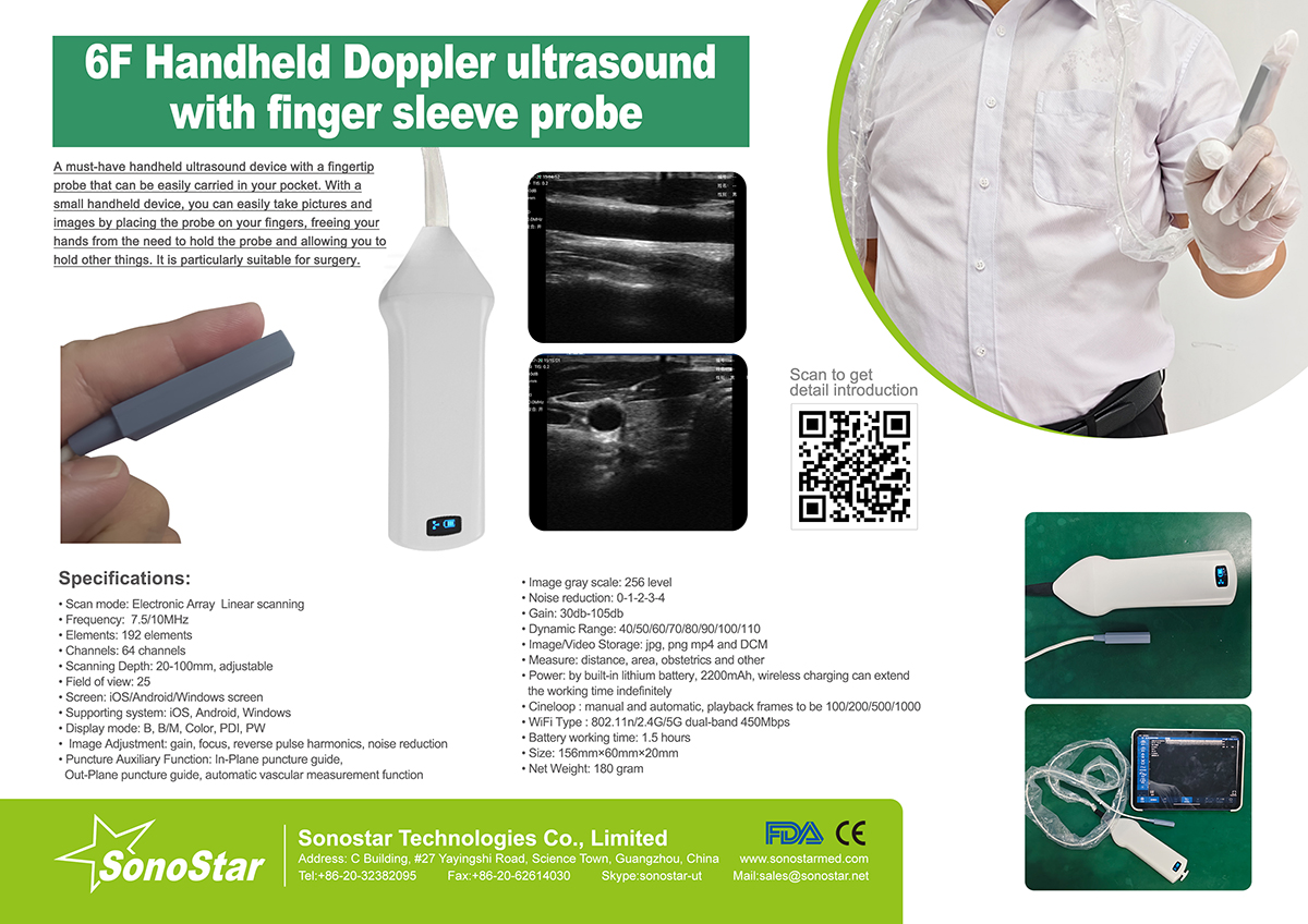 A must-have handheld ultrasound device with a fingertip probe that can be easily carried in your pocket. With a small handheld device, you can easily take pictures and images by placing the probe on your fingers, freeing your hands from the need to hold the probe and allowing you to hold other things. It is particularly suitable for surgery.